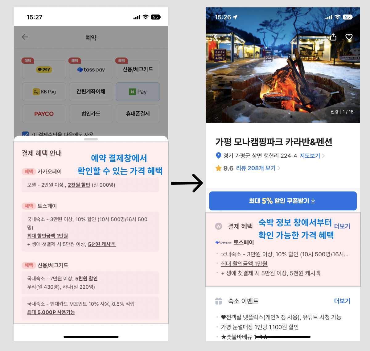 상황 (b) : 숙박 정보 창에서부터 결제 혜택을 확인할 수 있음