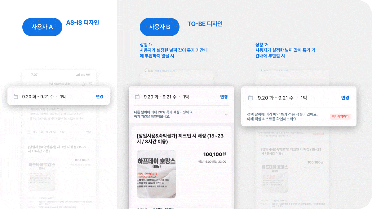 상황 1에서 유도가 되어 날짜를 변경한 사용자들 또한 상황 2에 해당하는 화면이 노출될 것이다.